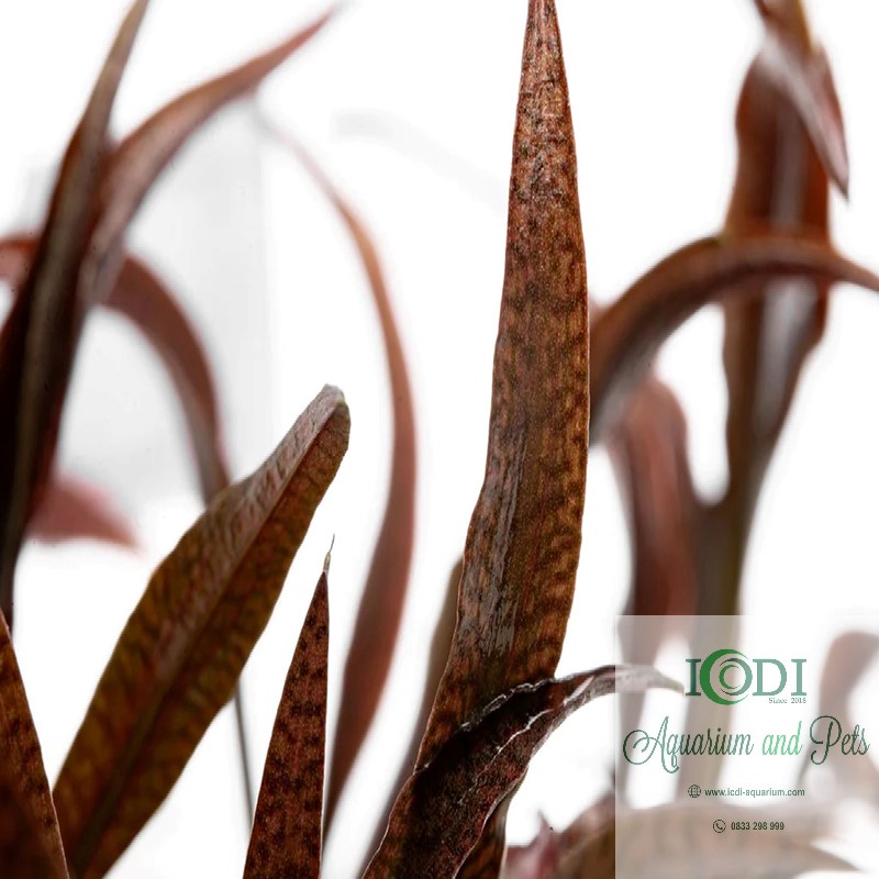 Tiêu Thảo Tiger là một loại cây thủy sinh độc đáo thích hợp cho khu vực trung cảnh và hậu cảnh của bể thủy sinh. Đặc điểm nổi bật là lá dài và mỏng, có hoa văn thú vị và có màu nâu đỏ, đặc biệt dưới ánh đèn RGB cho ra màu đỏ rất đẹp mắt. Một khi cây thủy sinh này phát triển hệ thống rễ vững chắc, nó chắc chắn sẽ nổi bật trong bố cục thủy sinh.