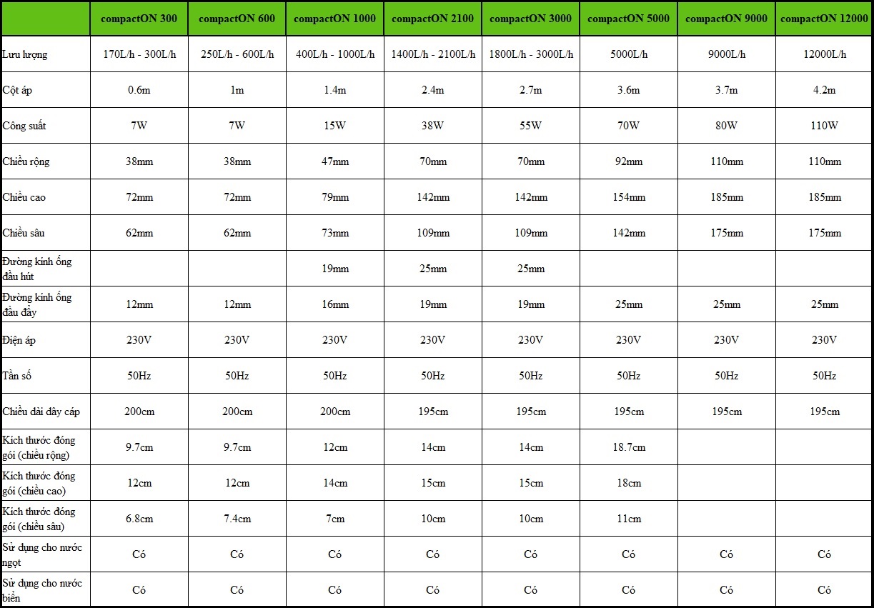 - Máy bơm hồ cá EHEIM compactON được đặc trưng bởi tên của nó thông qua một thiết kế nhỏ gọn và nhờ vào túi phụ kiện phù hợp để sử dụng linh hoạt