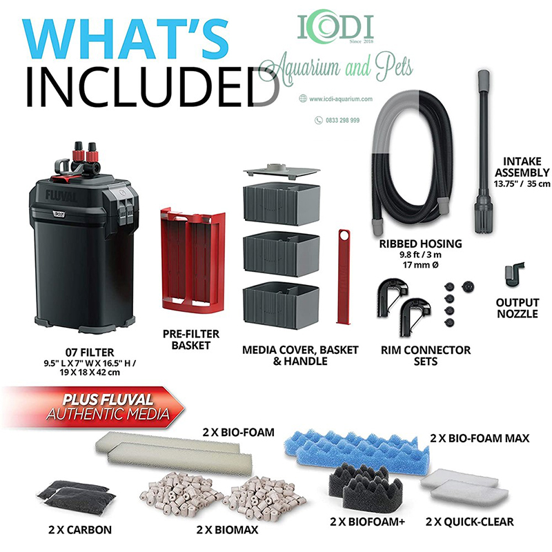 FLUVAL 07 SERIES được sản xuất phù hợp cho bể cá từ 30-120cm thông số từ 550-1450L/h lưu lượng bơm không đổi và cột áp bền bỉ theo thời gian.