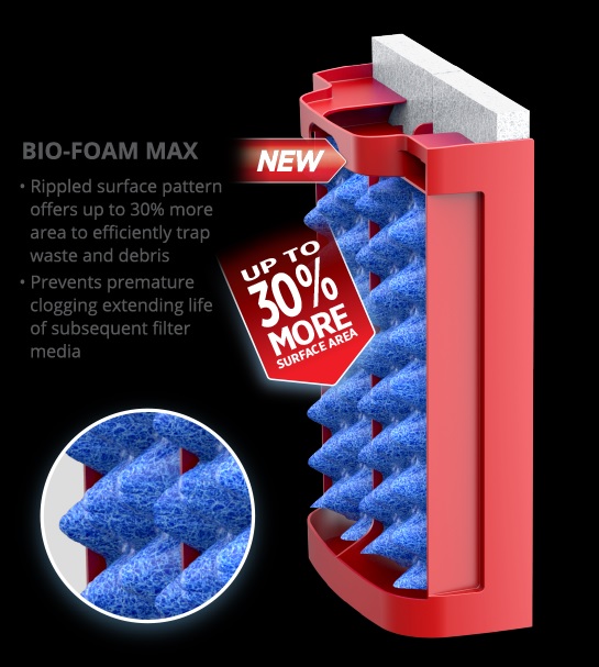Mút lọc thô được thiết kế với bề mặt gợn sóng, cung cấp thêm 30% diện tích bề mặt để giữ chất thải và các mảnh vụn một cách hiệu quả, giảm sự tắc nghẽn dòng nước, kéo dài thời gian bảo trì máy lọc.