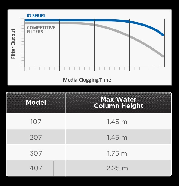 FLUVAL 07 SERIES được sản xuất phù hợp cho bể cá từ 30-120cm thông số từ 550-1450L/h lưu lượng bơm không đổi và cột áp bền bỉ theo thời gian.
