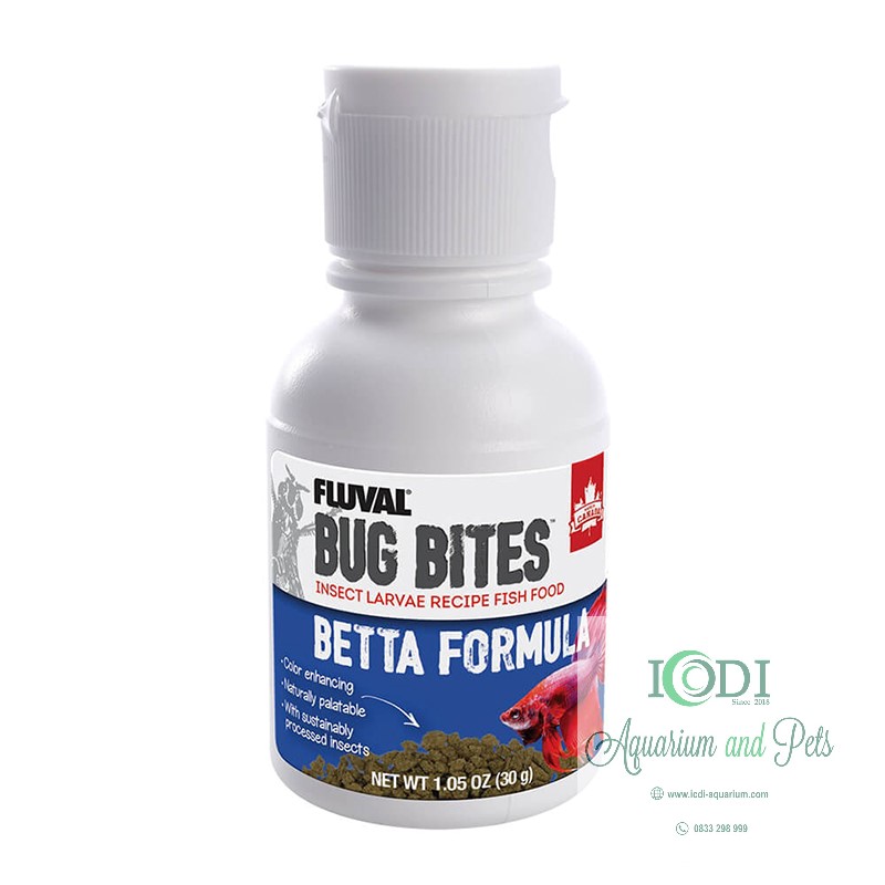 Thức Ăn Cho Cá Betta Fluval Bug Bites Betta Formula được nghiên cứu từ thói quen kiếm ăn theo bản năng của các loại cá betta trong tự nhiên, nó được bào chế từ côn trùng mới nở hay còn được gọi là ấu trùng với nguồn dinh dưỡng cao và được làm giàu với nhiều protein, vitamin, khoáng chất và nguyên tố vi lượng.