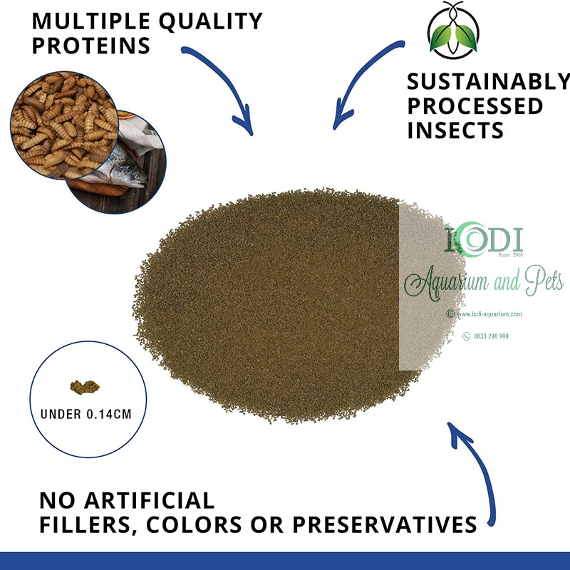 - Chứa tới 40% ấu trùng ruồi Lính Đen giàu chất dinh dưỡng (thành phần số 1).