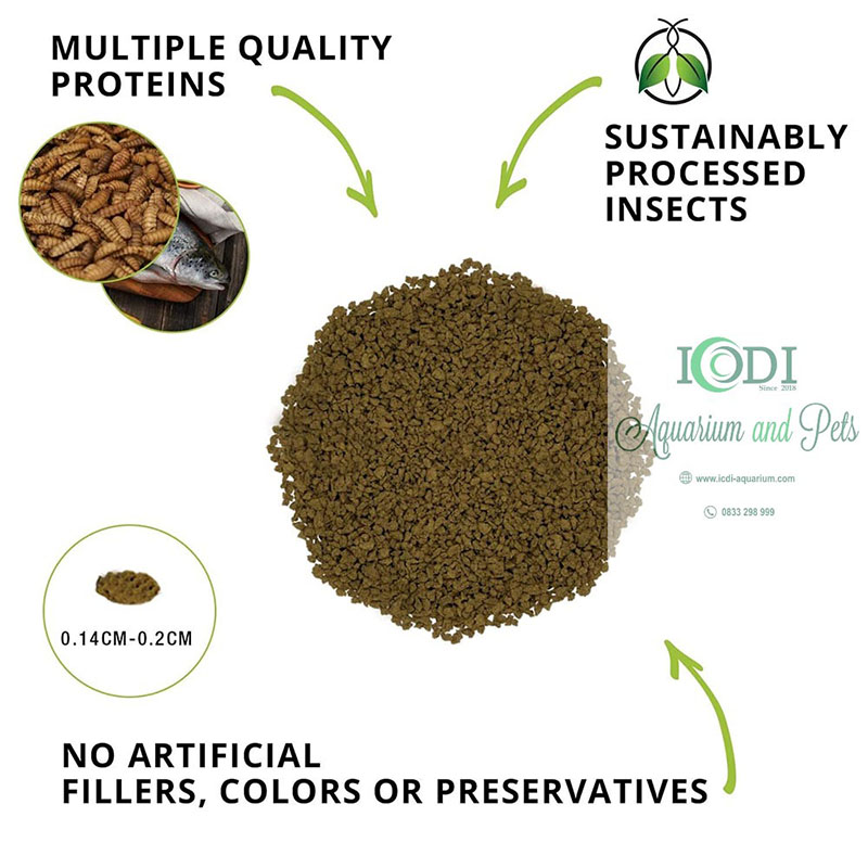 - Chứa tới 40% ấu trùng ruồi Lính Đen giàu chất dinh dưỡng (thành phần số 1).
