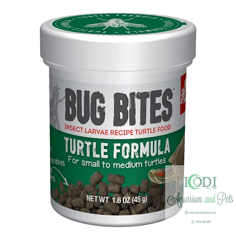 Thức Ăn Cho Rùa Fluval Bug Bites Turtle Formula được nghiên cứu từ thói quen kiếm ăn theo bản năng của các loại rùa trong tự nhiên, nó được bào chế từ côn trùng mới nở hay còn được gọi là ấu trùng với nguồn dinh dưỡng cao và được làm giàu với nhiều protein, vitamin, khoáng chất và nguyên tố vi lượng.