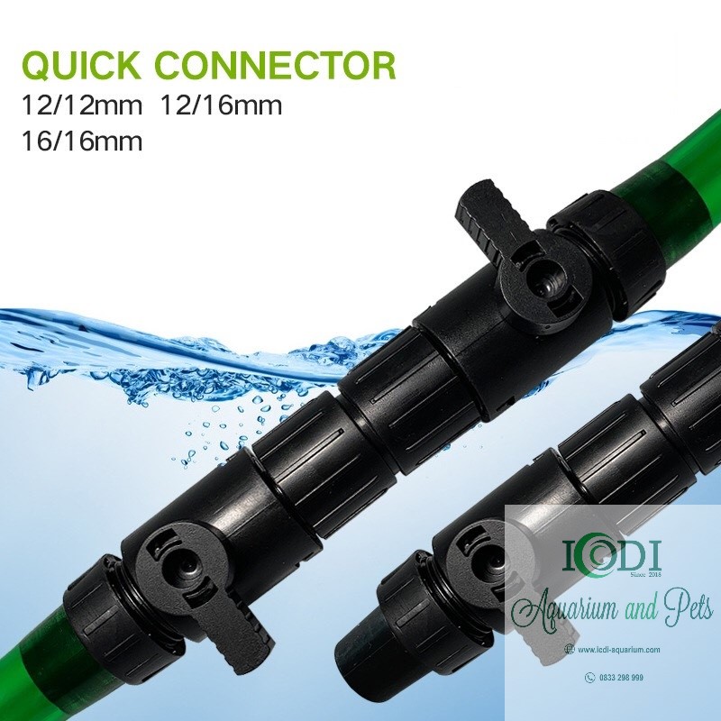 - Van Khóa Nối Nhanh Ống Nước Bể Cá phù hợp với kích thước ống 12mm, 16mm, 20mm.
