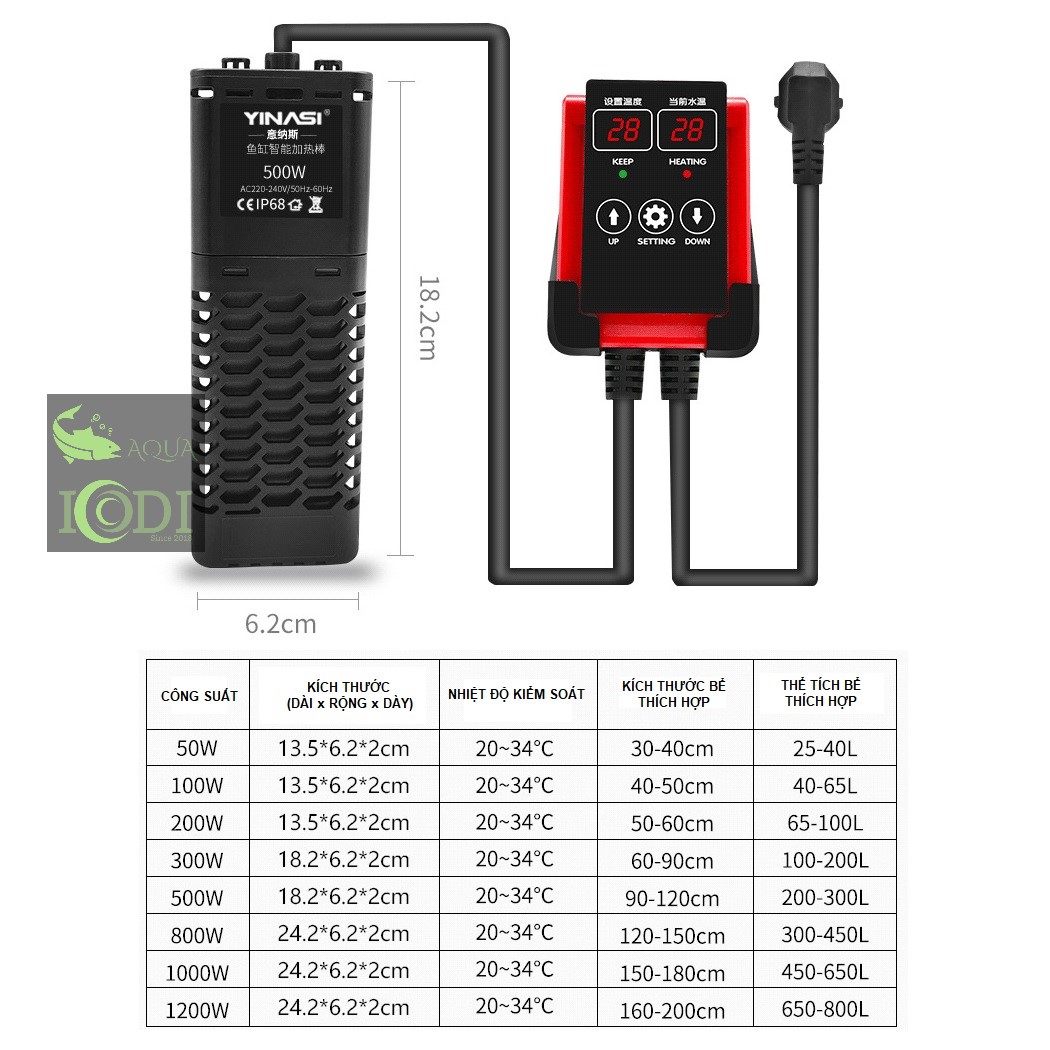 - Khi mực nước thấp hơn cảm biến ở trên cùng của thanh sưởi hoặc khi thanh sưởi cạn nước, màn hình LCD sẽ báo lỗi. Thanh sưởi sẽ tự động ngắt nguồn để đảm bảo an toàn.